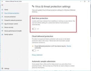– Tắt chức năng Real-time protection