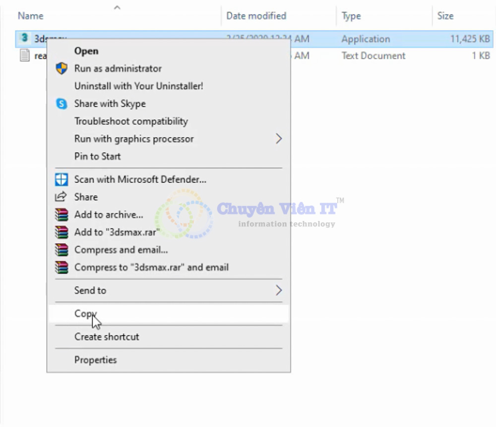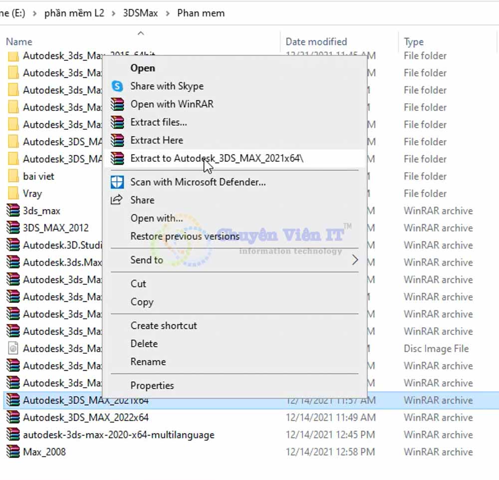 Sử dụng WinRAR để giải nén file 3DsMax_2021.zip.