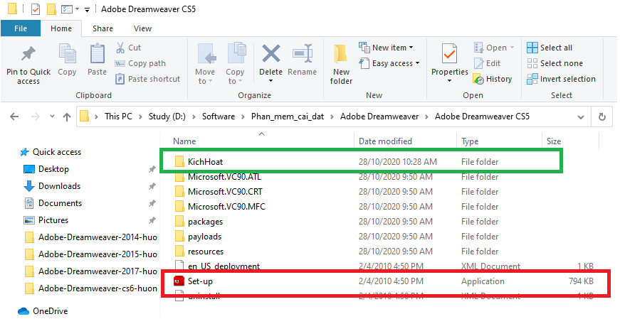 Bước 1: Dùng phần mềm WinRAR để giải nén tệp nén vừa tải. Bạn sẽ thấy thư mục chứa 2 file: Setup và KichHoat.