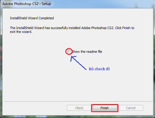 Bước 7: Khi cài đặt hoàn tất, bỏ dấu chọn ở ô Show the readme file, sau đó nhấn Finish.