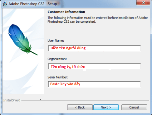 Bước 5: Điền thông tin vào phần User Name và Organization. Ở mục Serial Number, nhập key:1045-1412-5685-1654-6343-1431, sau đó nhấn Next.