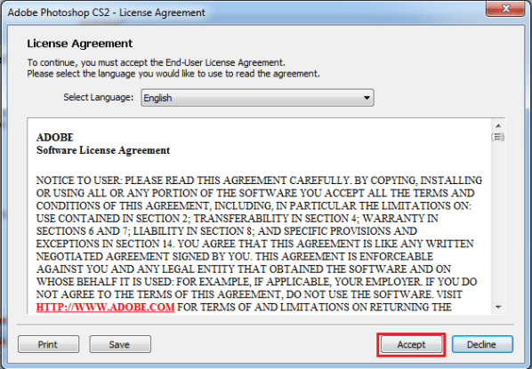 Bước 4: Tiếp tục nhấn Next, chọn ngôn ngữ là English và đồng ý điều khoản bằng cách nhấn Accept.