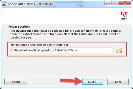 Giải nén tệp bằng WinRAR. Sau khi giải nén hoàn tất, nhấn đúp vào tệp “AfterEffects_11_LS7.exe” để khởi động quá trình cài đặt, sau đó chọn “Next”.