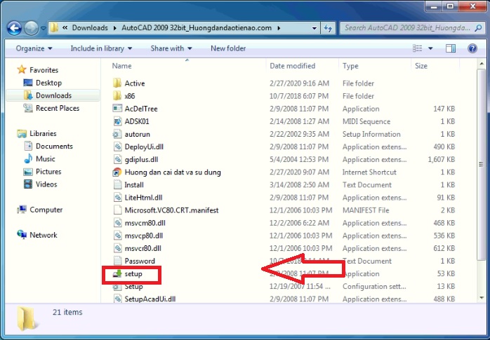 Bước 1: Sau khi tải về, bạn tiến hành giải nén tệp cài đặt AutoCAD 2009, sau đó chạy file “Setup.exe”.