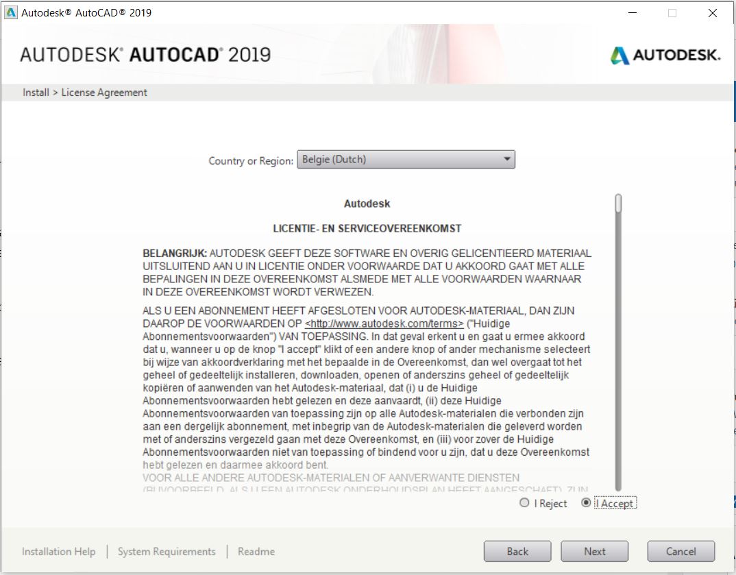Bước 3: Tích chọn “I Accept” để đồng ý điều khoản cấp phép của Autodesk, sau đó nhấn “Next”.