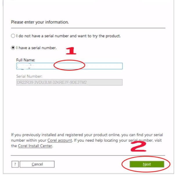 Bước 3: Tại giao diện cài đặt, chọn mục “I have a Serial number”. Nhập tên bất kỳ để tiếp tục và nhấn “Next”.