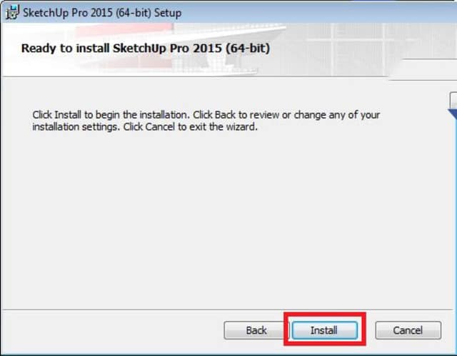 Bước 6: Nhấn Install để bắt đầu cài đặt SketchUp 2015.