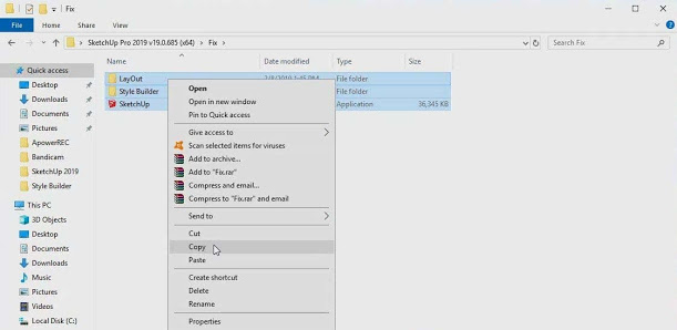 Bước 5: Truy cập vào thư mục cài đặt SketchUp Pro 2019 trong ổ C và dán các file vừa sao chép vào đúng vị trí.